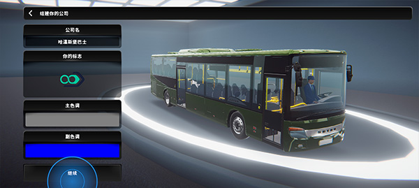3、我们需要组建一个公司,选择公司名、公司标志、车辆颜色等,选择好之后点击继续;