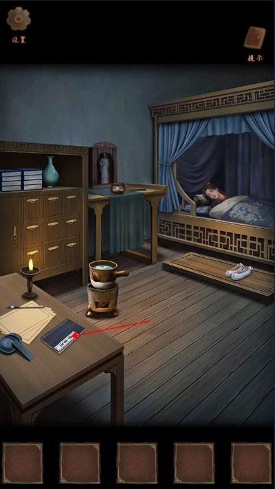 15、完成机关获得铜钥匙,使用铜钥匙打开床榻边的柜子,打开从里面获得士兵的盔甲。