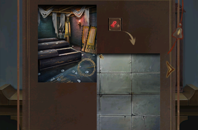 28、使用谷粉喂食马匹,马低下头的时候查看墙壁上的线索,点击场景左边墙根得木箱,如图所示根据马匹背后墙上图案调整转盘,打开木箱。