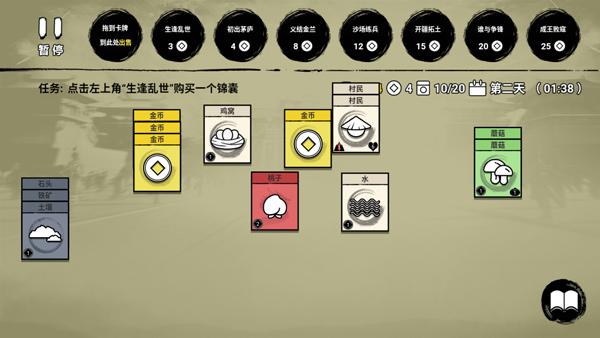 4、然后即可正式开始游戏,玩家需要通过堆叠卡牌来获取相应人物或者物品;