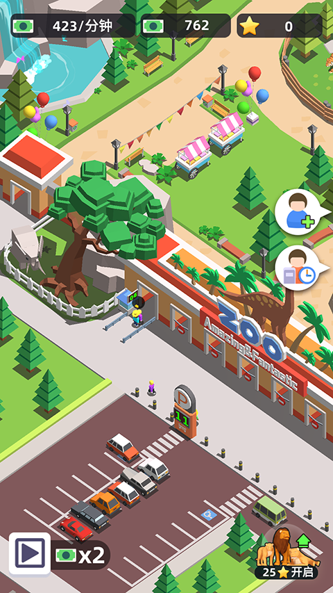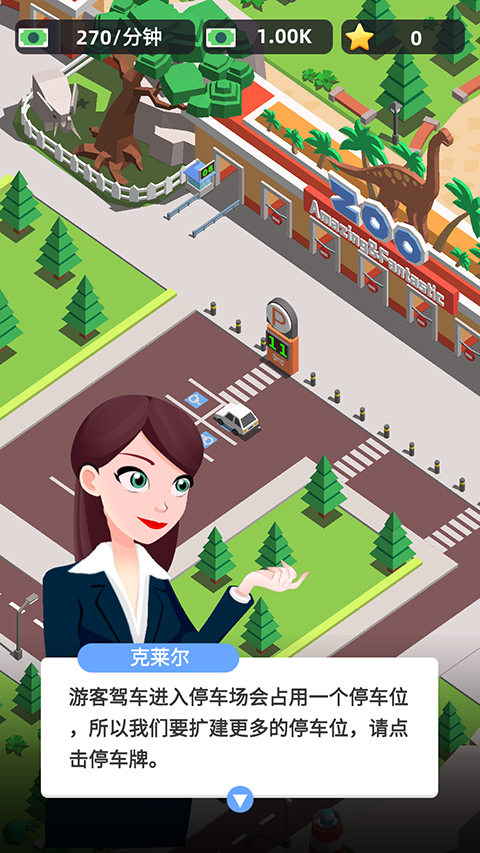 1、动物园之星游戏内停车场是玩家收入来源之一,我们可以通过点击停车牌来扩建停车位。
