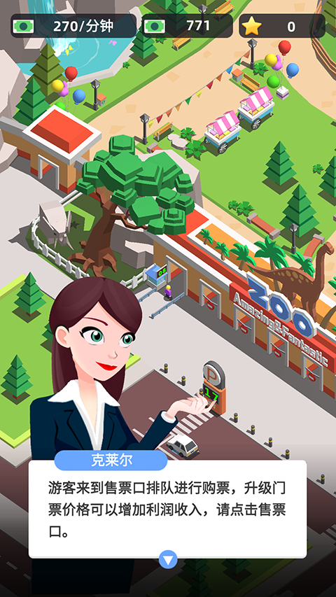 4、通过点击售票口进入升级界面,玩家可以通过提高门票来提升收入。
