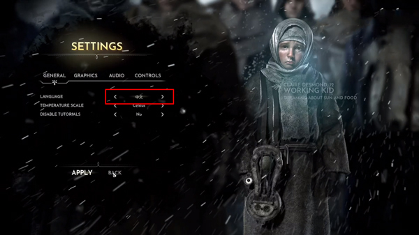 3、设置为中文,点击APPLY应用。