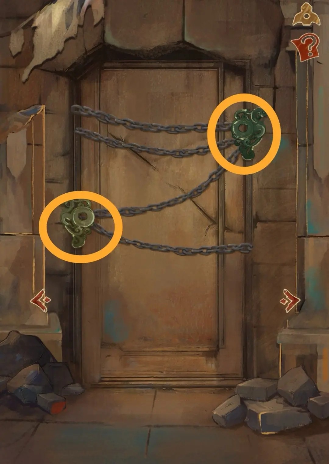门上的锁解开了,点门左边的小人,门打开进入下一场景。