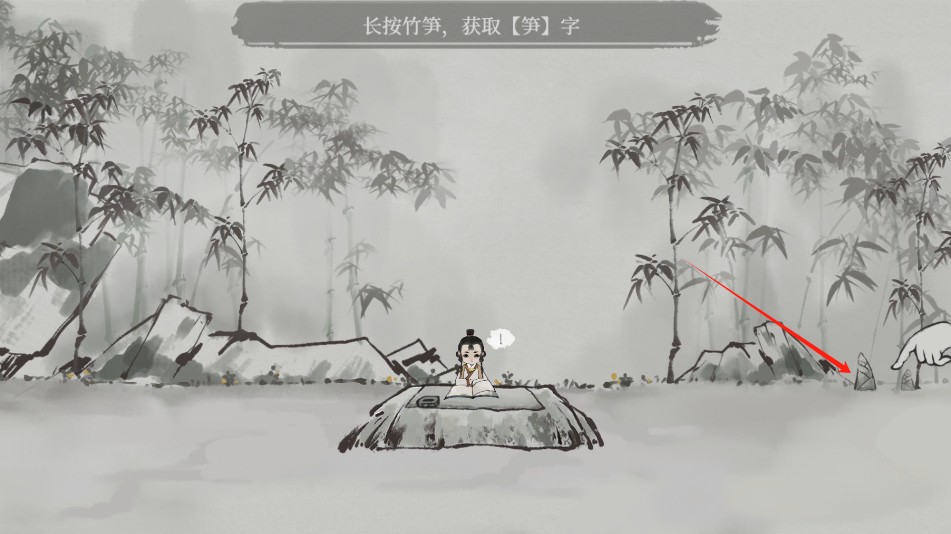 2、随后,点击右侧的竹笋,获取“笋”字,并按照指示拆分其偏旁结构。