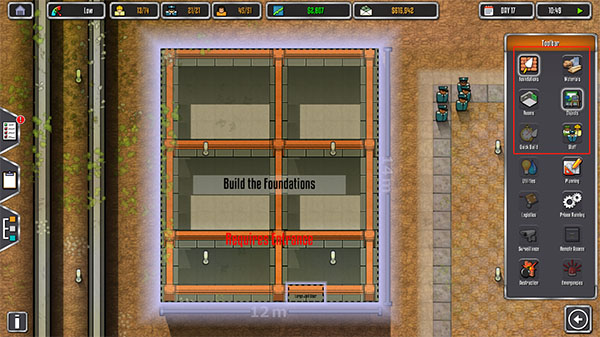 4、玩家负责管理监狱的各个方面,包括建造牢房和设施,规划和连接公用事业等等。