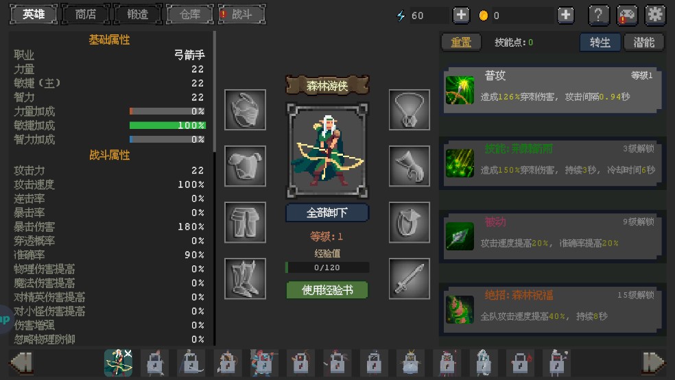 4、经验获取方式:主c单独转生每天刷商店捞经验书,80本高级经验书即可,辅助转生可攒够转生石同时转,然后打上经验套装去闯关60刷经验。