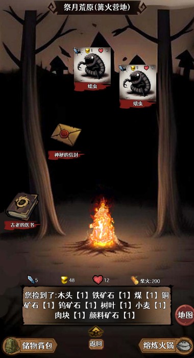 3、点击古老医书,触发事件,获取柴火3,可以进行燃烧
