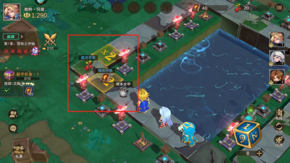 2、路径格子上会有对应的奖励,英雄角色走到有奖励的格子就会直接获得这个奖励;