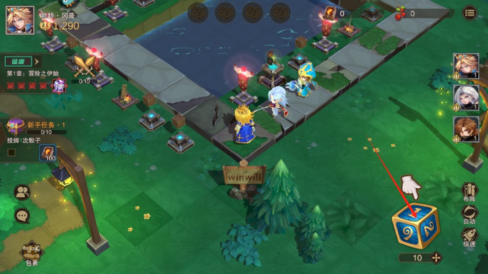1、进入游戏,开始转骰子,角色会在路径上前进;