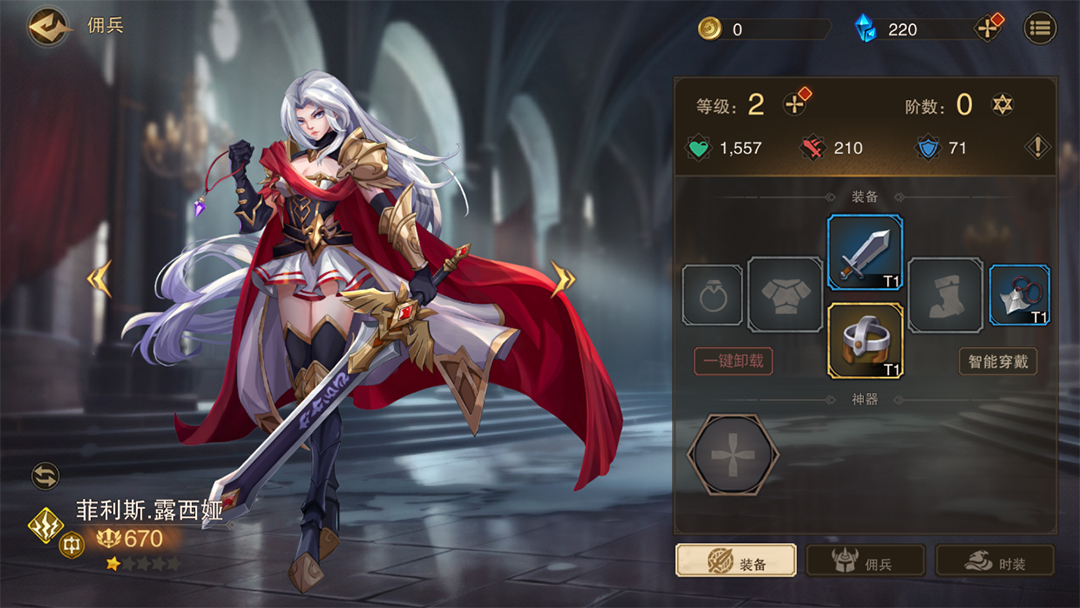 3、获得了装备就给佣兵英雄穿戴起来,可以提升其属性;