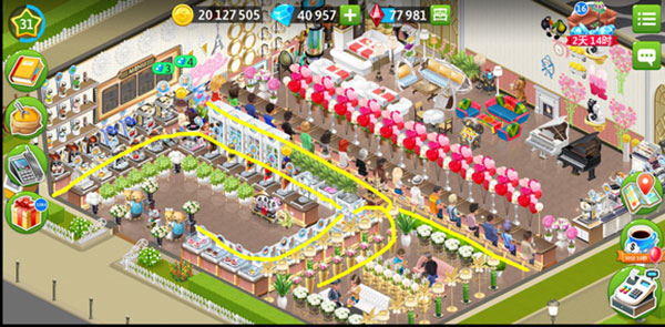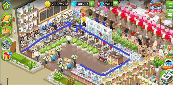 在我的咖啡馆游戏中,这算是目前自己做过的布局里面效率最高的一款,因为这个布局的小费收益还算不错,同时兼具美观和好看。但因为有点缺钱还有很多可以替换的,不过布局不会调整。低级别的时候也可以参考,就是家具不一样而已。后面再分析为什么说这是一个高效率布局: