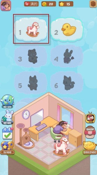 2、箱子中会出现房间内的物品,我们要观察房间的布局,将其摆放到正确的位置