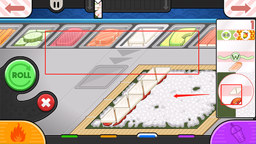 4、然后点击下面的棍片制作寿司,让顾客品尝美味的寿司。