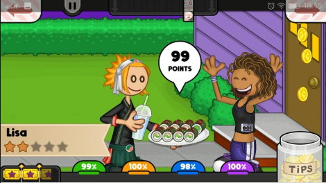冷饮店:最早登陆手机,应该也是最早一款得分点为拿起配料均匀喷洒的游戏,只有左右两个方向所以相对好控制,更容易在造型上拿高分,缺点是搅拌机时间太长,和其他步骤不好配合煎饼店:个人不太喜欢的一款,得分点包括高处扔饼和圆形对称浇汁,而且圆形还是侧面俯视视角,判定非常迷,基本上除了教程就没得过高分。