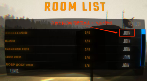 1、要加入他人创建的房间,先在主界面点击JOIN GAME;