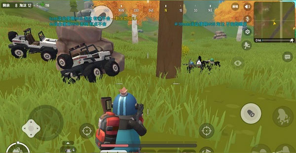 不停地转动视角看四周的情况,因为在这个游戏里香肠人最容易被发现(万绿丛中一点红),所以看见人就要当成他也看见你了一样躲藏。尽量走树,岩石等有掩体的地方,当你遇到房子时,从奔跑切换到走路,因为这样可以更好的观察房子里是否有人(比如里面门是否开着),然后再选择进或不进。