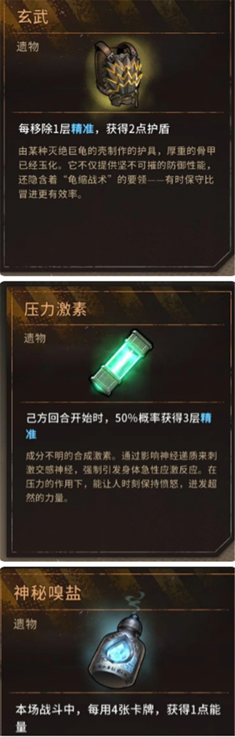7、装备:我们初始增加的效果,说白了,入场带的装备,入场带的强化卡片和装备是我们战斗力的关键。