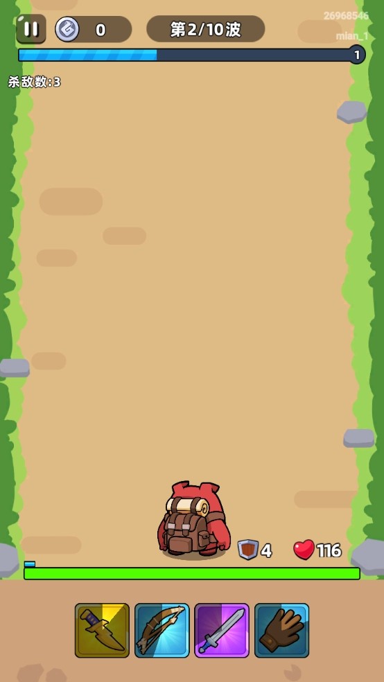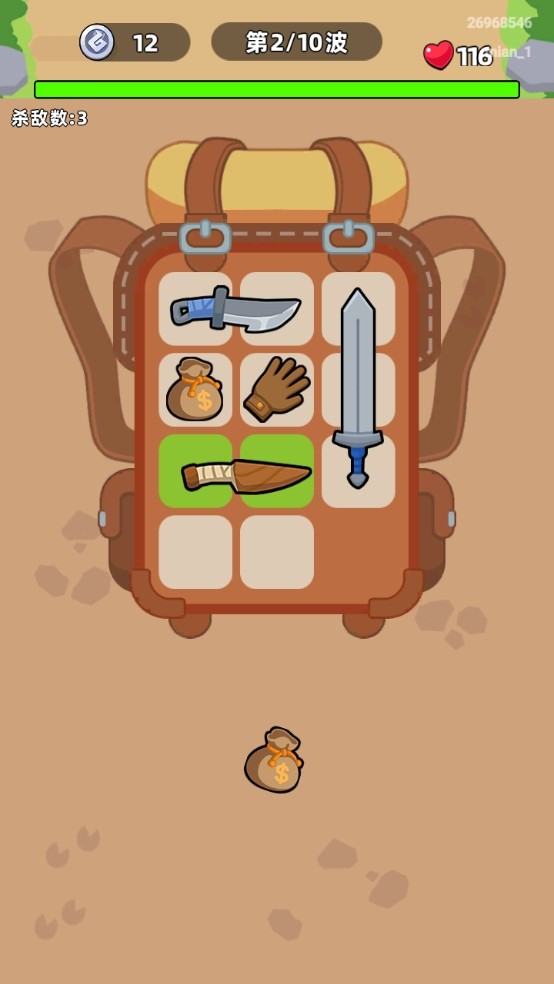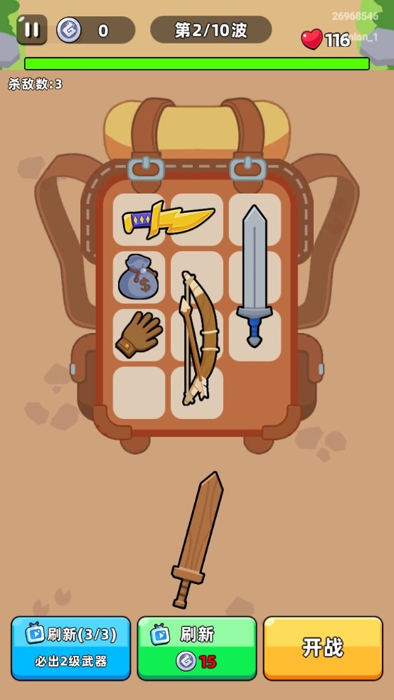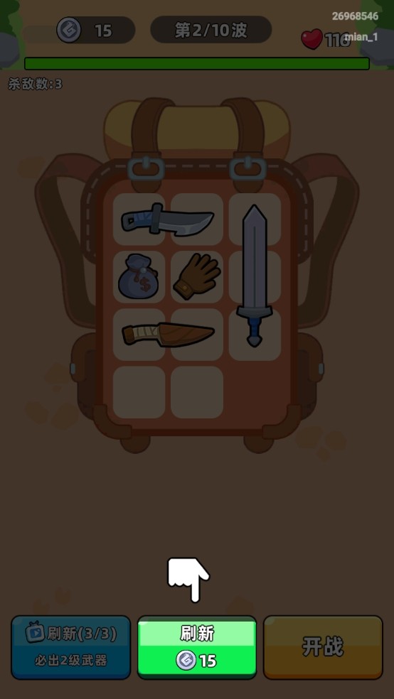 4、安排好自己的背包后就可以点击开战继续进行战斗闯关;