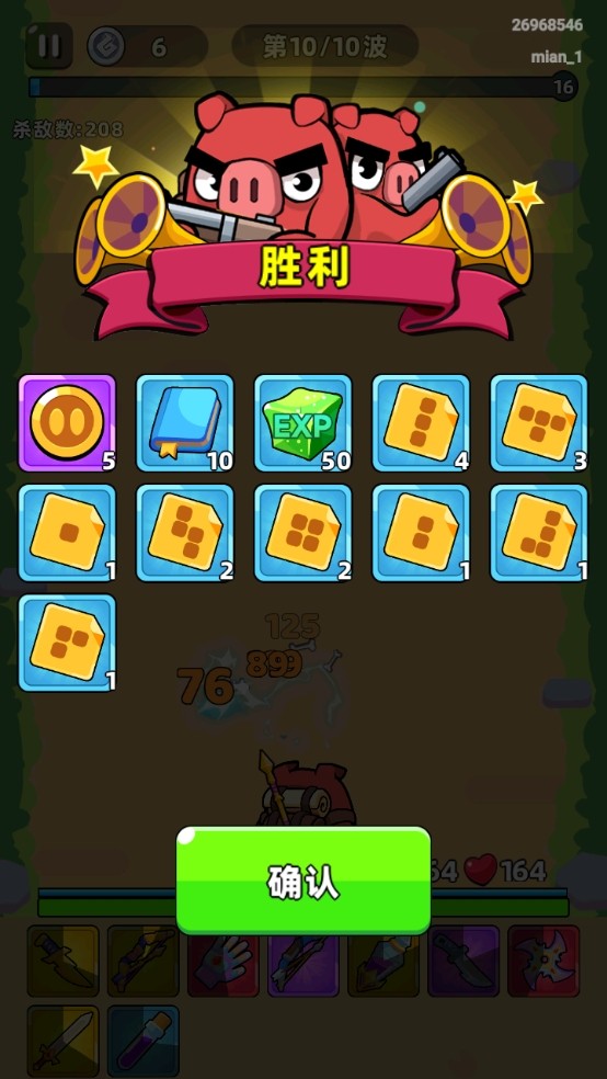 5、不断战斗消灭敌人后顺利闯关,获得游戏胜利和奖励。