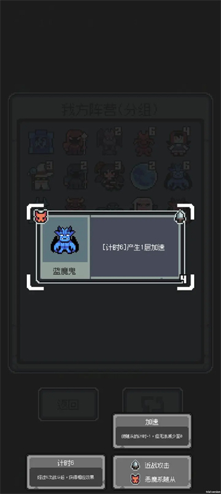 这个神器可谓是加速流派的核心了,80%的概率在人数堆积下也是极为可观,基本上前期拿到它就可以准备起飞了,配合一些「计时」短的怪物攻击力直接叠到起飞,就算是「计时」长的怪物比如说蓝魔鬼也是可以辅佐其它神器来达到极速启动的目的。