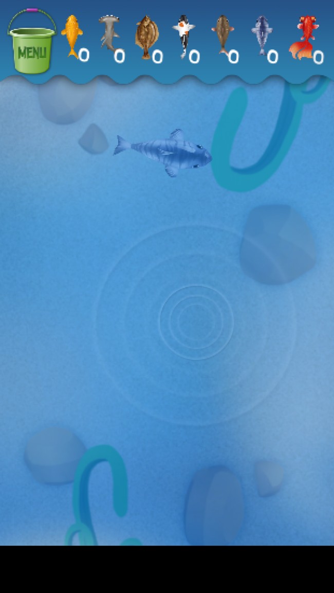 当它加载完成之后,就会进入到小猫钓鱼的界面,在这个过程中,主人可以按照屏幕上的指示来划屏,也就是把小猫的鱼线往下拉,然后放手。