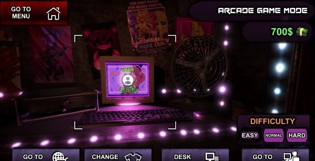 从左往右分别是:商店、服装、桌面摆设、开始游戏。开始游戏上方就是难易度