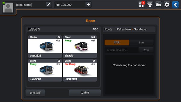 5、以下示例为加入其他玩家的房间,进入房间后点击“准备”按钮;