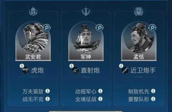 该组合为小型沉默组合,有肉有控制,虽不强力,但可以让武安君技能生效。之后,武安君作为统帅位不变,其他中军、前锋位在后期逐步以目标队进行替换,其他金色如西子、王昭昭,都可以在中期做进阶替换,直至目标达成为止。控制系英雄是替换的核心。