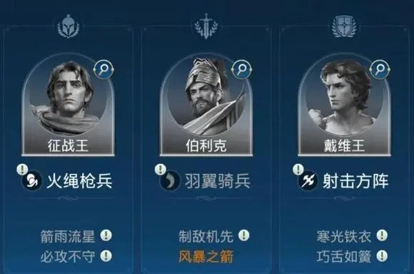 组合可在偏攻击和偏生存中选择,没有任何限制。之后,以戴维王前锋位置不变,中期任何金色进攻,智力、辅助型英雄都可进行进阶替换,直至目标达成为止。戴维王和雷欧尼达一样,百搭型前锋,前中后期过渡非常丝滑。