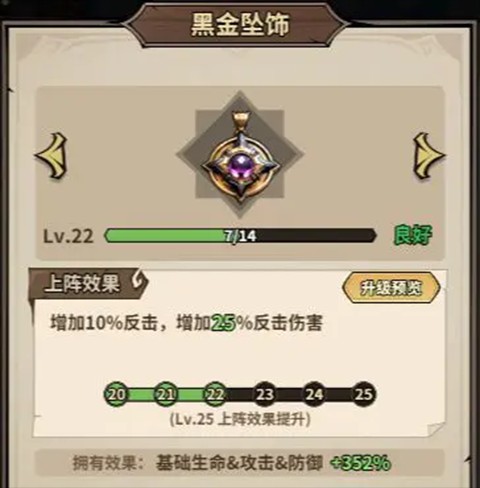 黑金坠饰,可以提升反击属性,同时拥有还能提升基础生命&攻击&防御,非常符合魔战士的职业特点