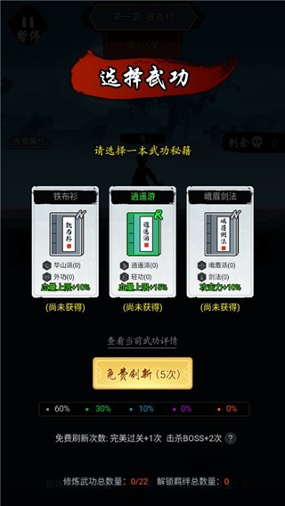 3、每次通关都会获得一次新的武学学习机会,逐步丰富自己的技能体系。