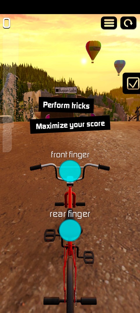 5、稍等片刻,游戏加载完成后即可进入,采用双指滑动操控单车完成各种炫酷特技;