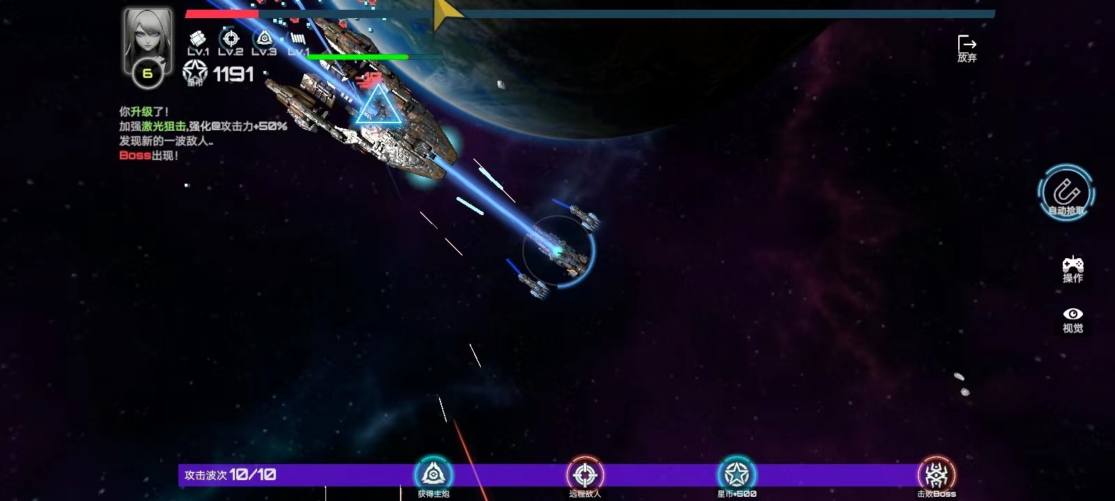 3、你可以选择三个不同感受的舰队,只需一根手指就能实时控制整个舰队和无数敌人进行厮杀。