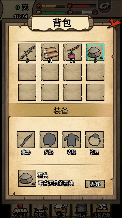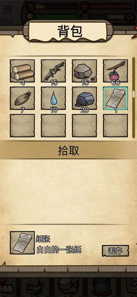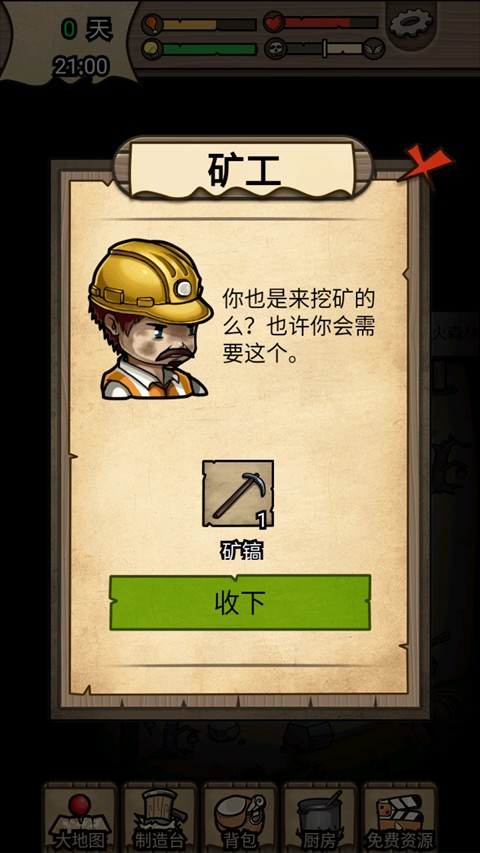 9、地图下方有3个取水口,可以循环取得水。获得一些水之后,回家做4个纸张,然后去平谷湖畔交给老者,开启野熊部落地图。
